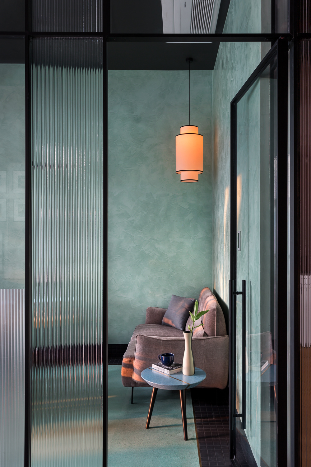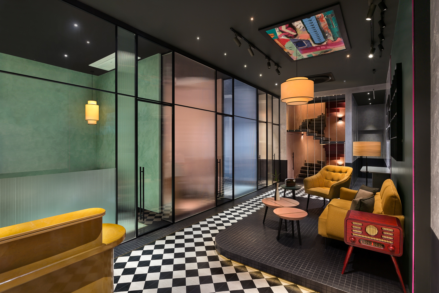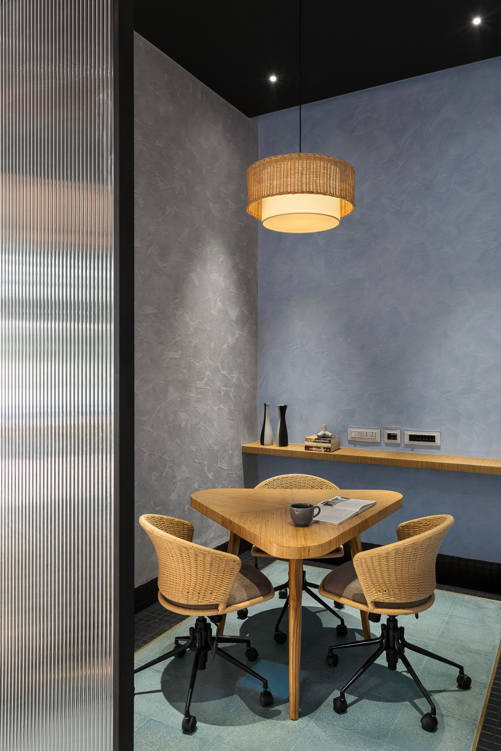 ‘The window’ is a music studio, lounge, and jam room designed for a music composer. The client, in his early 40s, a full-time industrialist, recently resumed the composition and production of music in pursuit of his passion. Inspired by Matisse’s ‘Open Window’, the lounge was designed as his window into a whole new world. The colours and textures are inspired by the painting and reflect onto the walls, floor, and furniture throughout the space.
