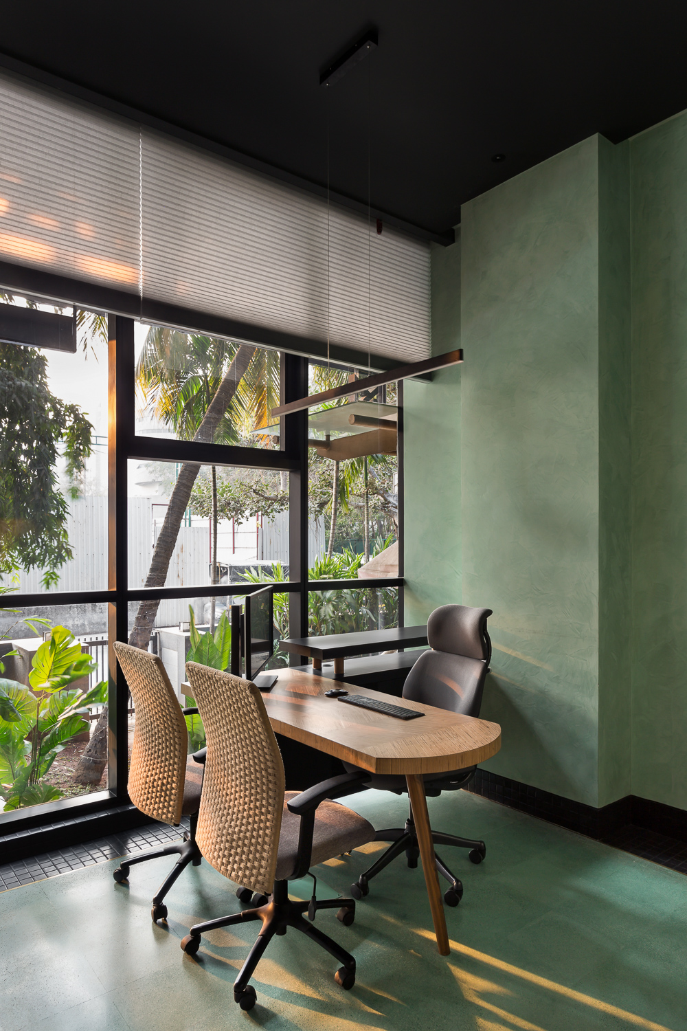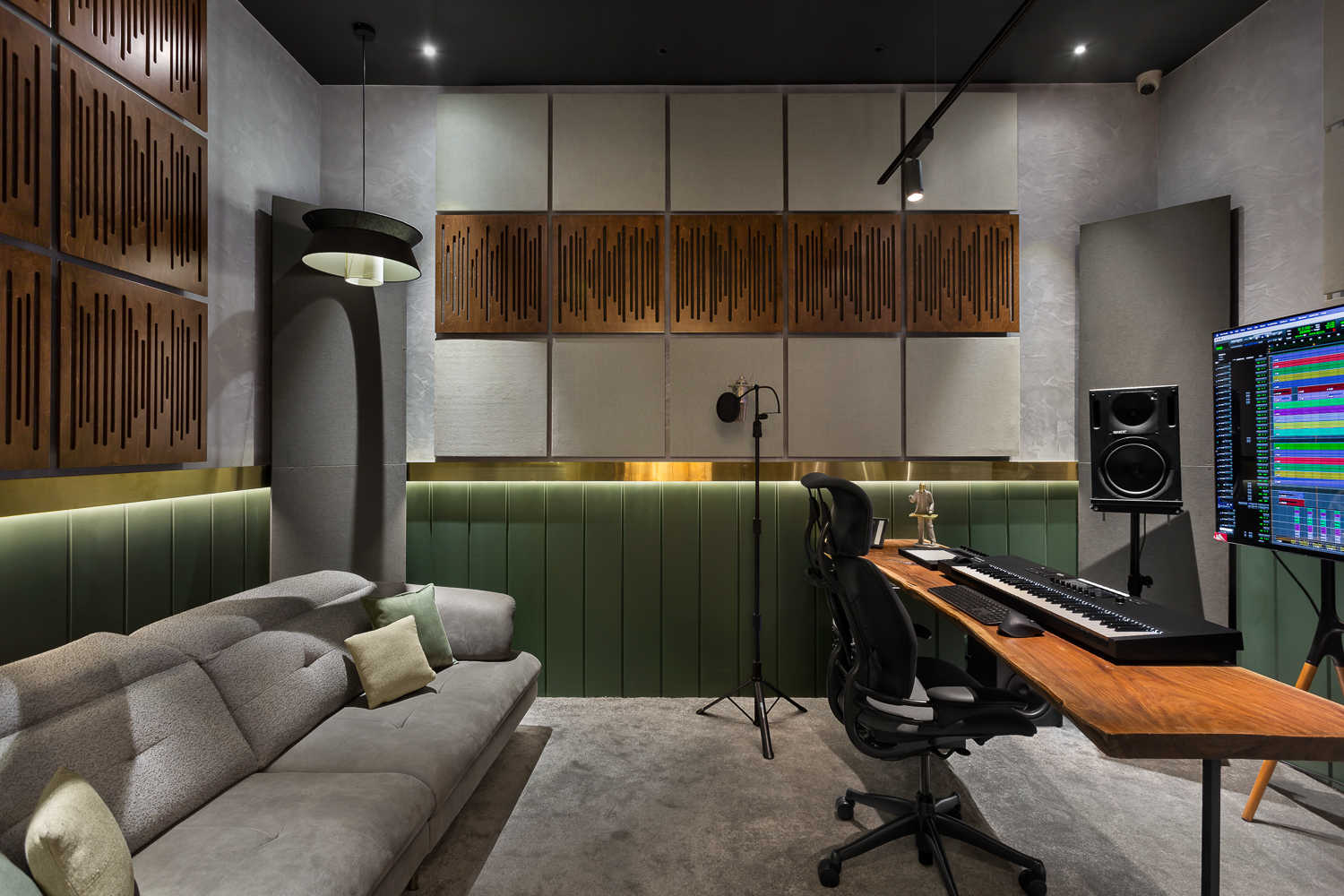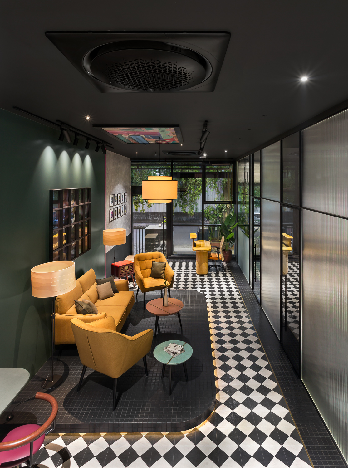 ‘The window’ is a music studio, lounge, and jam room designed for a music composer. The client, in his early 40s, a full-time industrialist, recently resumed the composition and production of music in pursuit of his passion. Inspired by Matisse’s ‘Open Window’, the lounge was designed as his window into a whole new world. The colours and textures are inspired by the painting and reflect onto the walls, floor, and furniture throughout the space.