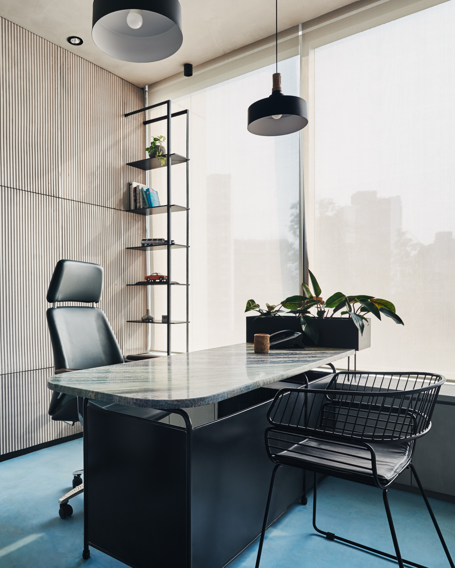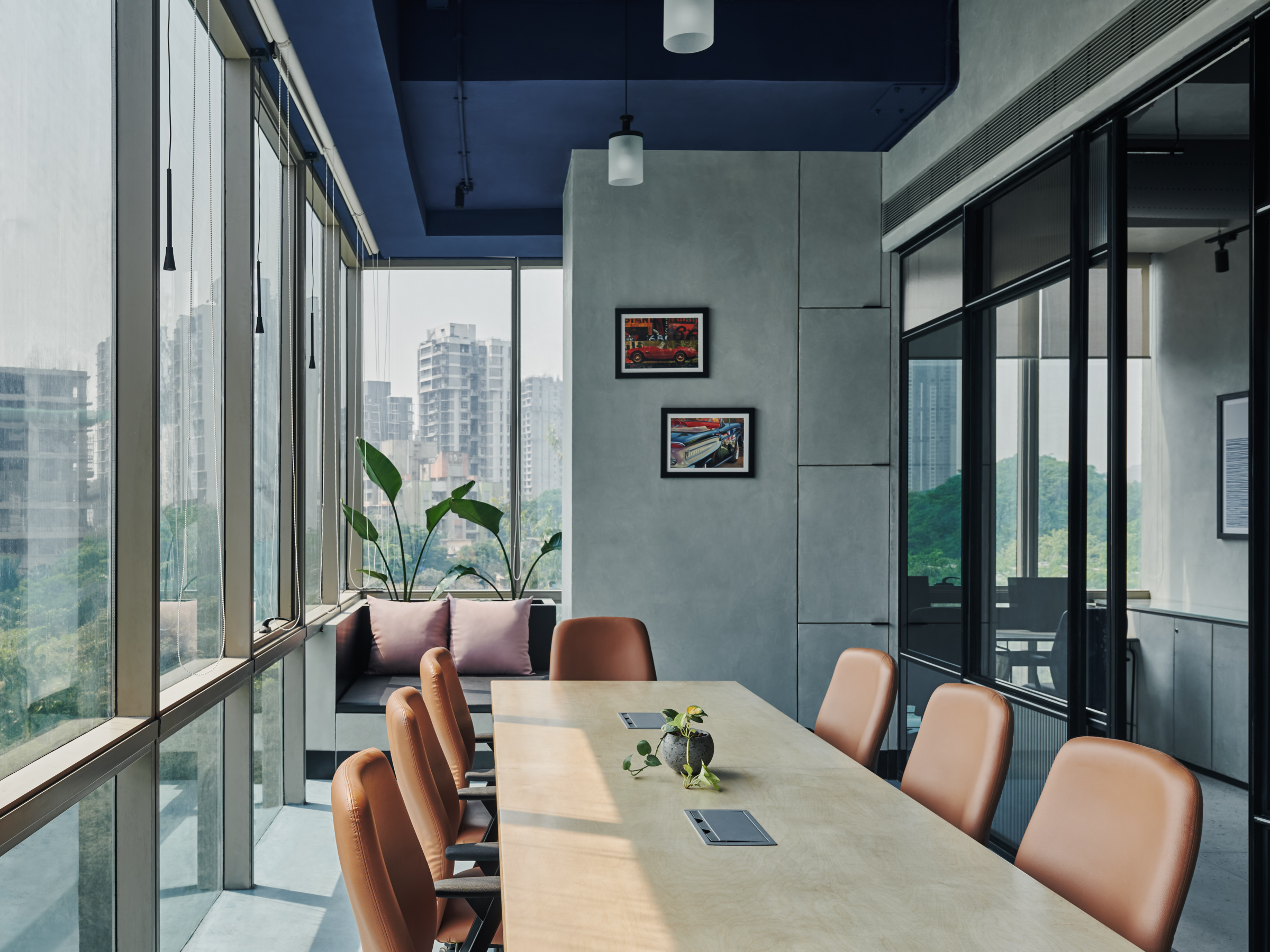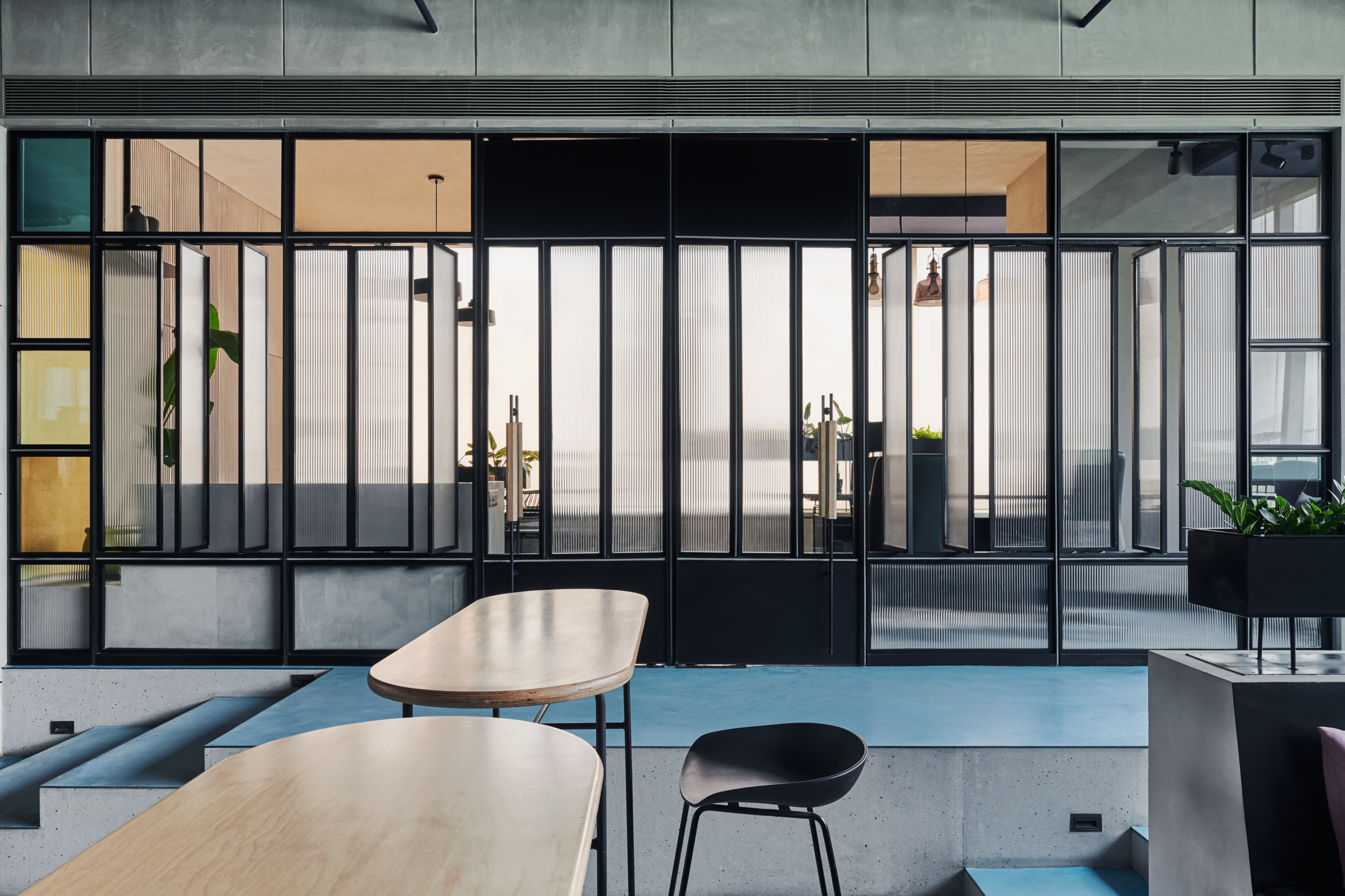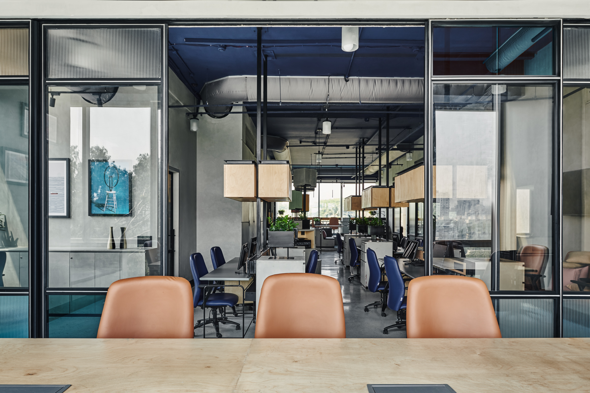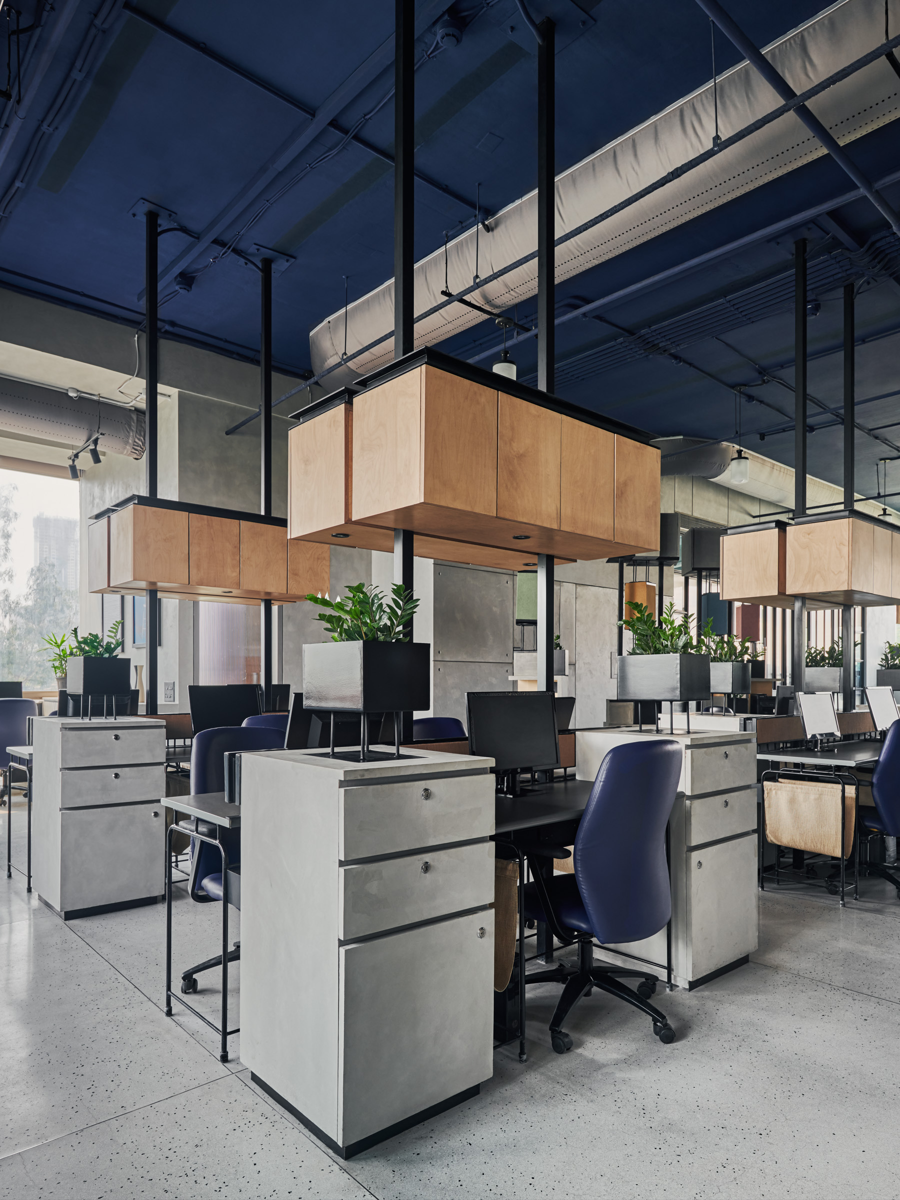 This is the back office for a dealership of a prominent automobile company. The office has been designed for the COVID and post-COVID work setting. The work desks and storage have been designed to be modular, such that the office can be expanded in the future but also work for our current times. Split across levels, the office has been designed to encourage transparency and open discussions.